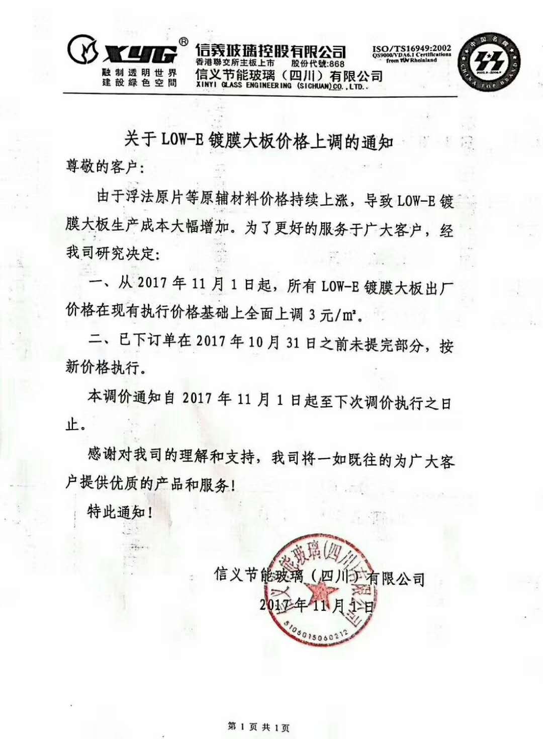 11月份各大廠家價格漲價通知